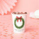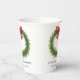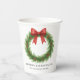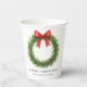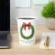 Des tasses en papier de Noël modernes, au design simple et minimal, avec une couronne d'aquarelle, ainsi que le message de bienvenue "Joyeux Noël" et votre nom de famille.