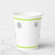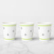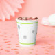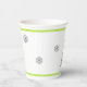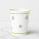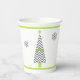Des tasses en papier de Noël dans un esprit moderne, avec un sapin de Noël dans un motif en chevron gris et blanc aux accents vert citron et flocons de neige gris. Des produits de fête correspondants sont disponibles.