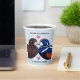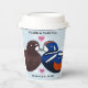 Célébrez n'importe quel anniversaire mariage avec ces élégantes tasses en papier, qui présentent une belle paire stylisée de Arlequin plongeur ! Un lettrage élégant avec des confettis hexagonaux sur un arrière - plan bleu clair ajoute une touche mémorable pour cette occasion spéciale et cette étape importante. Customiser avec les noms des oiseaux de l'amour et les années de mariage. Design © W.H. Sim. Voir plus sur zazzle.com/expressionsoccasions
