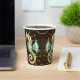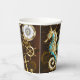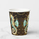 Gobelets En Papier Arrière - plan en bois avec cheval de mer mécaniqu