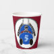 Quel Amusant ! Assurément pour ravir à la fois les enfants et les amateurs de course automobile, le design de ces tasses en papier est un tableau numérique original de Leslie Sigal Javorek d’une vue frontale d’une voiture et d’un conducteur d’inspiration Bugatti des années 1920 d’un bleu vif, avec des drapeaux et des marques de pneu derrière.