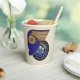 Alerte pour les amateurs de voiture classique et Art Déco ! L'image élégante et sophistiquée de cette tasse en papier cool est un dérivé frappant d'une affiche de rallye des années 1930 avec un visage en trompe l'oeill créé à l'avant de la voiture de tourisme des années 1930, mis en valeur par Leslie Sigal Javorek, qui a également ajouté un pneu à roues fantaisie dans l'arrière - plan.