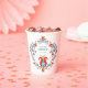 Cette tasse en papier d'inspiration scandinave présente un design d'art folklorique floral réalisé dans le style traditionnel de peinture à tole scandinave. La bordure ronde autour de l'avant de la tasse a un design tourbillon bleu avec des fleurs orange, gris et rouge sur un arrière - plan blanc. Personnalisation : Vous pouvez personnaliser avec votre nom et votre date de mariage. Cette peinture murale est coordonnée avec la collection "Velkommen".