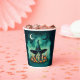 Add a magical and charming touch to your party with our disposable Attractive & Mystical Halloween Witch Conjures Enchanting Spells Amid Glowing Candles And Vibrant Pumpkins Under A Moonlit Teal Sky paper cups. This vibrant design features a mystical witch casting spells under a teal moonlit sky, surrounded by glowing candles and vibrant pumpkins, setting the perfect mood for your Halloween celebrations.