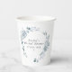 Cette tasse en papier pour la fête de mariage comprend des fleurs élégantes bleu poussiéreux et blanc et une police minimaliste élégante. Ce style est parfait pour tout événement simple et classique.