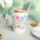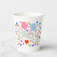 An 8 oz White Paper Cup, = Optional, No Lid= Optional, with a Drawing/Design, of the word Baby, in a Lighter Gray Color, with a Pink and Light Blue, Color Balloon, with Some Colorful Confetti, with a Red, Color Balloon. = on the front and back of the paper cup = (Drawing/Design by P.J.M.), =With the White Background removed.