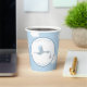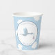 Célébrez l'arrivée de votre petit homme à votre baby shower avec cette tasse en papier personnalisable, avec un arrière - plan bleu ciel adoré et nuageux avec une cigogne portant un coeur.