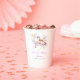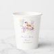 Jolie tasse en papier baby shower avec un adorable oiseau et fleurs violettes et jaunes. Parfait pour un baby shower de printemps ou d'été. Les mots peuvent être changés en fonction de vos propres détails ou exigences