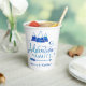 "L'aventure attend" ! dans ces mignonnes tasses de papier baby shower à thème aventure. Doté de montagnes dessinées à la main et de flèches dans une jolie aquarelle turquoise & bleu. Parfait pour les baby showers pour enfants à thème montagne / camping / tribus aventure.