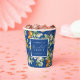 Jolis gobelets en papier pour votre Shower de Mariage ou Brunch de Mariage. Le design présente un gobelet bleu avec un motif aquarelle de fruits d'agrumes comprenant des oranges, des citrons, des fleurs et diverses verdures. Personnalisez avec le nom de la mariée et la date de la douche. Un détail agréable pour votre bar à cocktails, bol à punch ou station d'eau