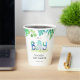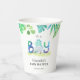 C'est un Boy Dinosaur à thème baby shower tasses de papier ! Le design présente un adorable dinosaure d'aquarelle juste haché d'un oeuf, typographie colorée, feuilles de palmiers et autres plantes botaniques.