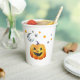Un petit boo tasse de papier baby shower citrouille Halloween. Design moderne sur le thème de l'Halloween pour une fête de boo ! Cette tasse en papier comporte un citrouille, une lune et des étoiles. Cette tasse est idéale pour les parties de douches pour bébés filles et garçons!