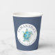 Ces tasses en papier de baby shower ont une tortue marine bleu aquarelle dans les tons bleus. Utilisez les champs modèle pour ajouter votre texte personnalisé. Un choix mignon pour un séjour sous le thème de la mer. Aquarelle et design de Victoria Grigaliunas. Pour en savoir plus sur les idées baby showers, visitez www.zazzle.com/dotellabelle