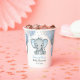 Cette adorable tasse en papier baby shower présente un éléphant de bébé bleu et gris avec ballons et confettis. Facilement customisé pour votre événement en cliquant sur "Personnaliser". Parfait pour les clients de douche !