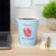 Coupes en papier Baby shower bleu mignonne avec un beigne rose en aquarelle. Il est très facile de customiser, avec vos données personnelles.