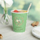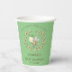 Les tasses à papier à thème baby shower Whimsical sont mignonnes bee et la couronne de fleurs avec du texte personnalisable sur arrière - plan vert.
