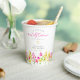 "Un peu de fleur sauvage est en route" baby shower personnalisé merci tasses en papier. Conçu et illustré avec amour par Kristine Lee Designs www.kristineleedesigns.com