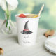 Cute et simple baby shower d'Halloween tasses personnalisées en papier, avec casquette de sorcière aquarelle. Illustration aquarelle par Kristine Lee. Pour en savoir plus, visitez le site www.kristineleedesigns.com