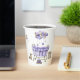 L'invitation montre l'aquarelle d'un berceau, d'une nourrice mobile sous forme de nuages ronds violets, des jouets pour enfants : un éléphant rongeur, un canard sur roues, un ours en peluche, un lapin, un bib, une sucette, une pyramide.