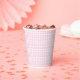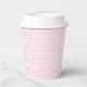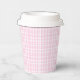 Coupe en papier baby shower rose doux en vichy. Coordonner plaques et bols en plaid rose et blanc pour compléter votre événement mémorable.