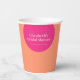 Ajoutez une touche de couleur à votre fête de mariage avec ces gobelets en papier rose et orange, dotés d'un design géométrique chic. Parfaits pour servir des boissons, ces gobelets élégants apportent une touche moderne à votre célébration. En cliquant simplement sur "Personnaliser", vous pouvez adapter le texte pour qu'il convienne parfaitement à votre événement. Pour encore plus d'options de personnalisation, cliquez sur "Modifier à l'aide de l'outil de conception" pour explorer des possibilités infinies ou envoyez-moi un message pour discuter d'une conception entièrement personnalisée.