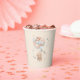 Cette tasse en papier présente un adorable ours en peluche tenant des ballons. Autour de l'ours en peluche, de petites étoiles apportent une touche douce et capricieuse.