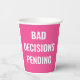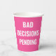 Bring the laughs to your celebration with this “Bad Decisions Pending” paper cup—perfect for bachelorette parties, girls’ trips, and unforgettable nights out. Featuring bold, eye-catching typography on a vibrant pink background, this cup sets the tone for a fun, carefree celebration.