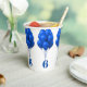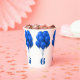 Ballons bleus tasses en papier pour l'anniversaire d'un enfant. Inclure son âge qui entourera la tasse. Chaque numéro semble tenir un tas de ballons bleu vif.