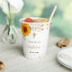 Pour un baptême élégant, neutre du genre. Un arrière - plan blanc chic. Décoré de tournesols rustiques aquarellés, feuilles de verdure eucalyptus, sprigs, verdure, feuilles faux or. Une fausse croix d'or. Personnalisez et ajoutez le nom de l'enfant et une date. Lettres noires et dorées.