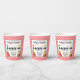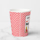 BBQ baby showers tasses de papier avec nourriture BBQ sur un arrière - plan rouge en vichy. Ces tasses de papier baby shower barbecue sont facilement personnalisées avec du texte.