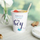 Ce charmant baby shower en papier à thème océanique présente un charmant coeur de pulvérisation de baleine bleue, parfait pour célébrer l'arrivée d'un bébé garçon. La tasse est conçue dans une jolie teinte bleu marine, avec les mots "Baby boy" élégamment affiché. De plus, le nom de la future mère est inclus, ajoutant une touche personnalisée à la célébration. Parfait pour ajouter une touche de propreté à tout événement baby shower !