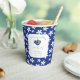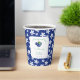 Il s'agit d'une tasse de papier baby shower personnalisable avec un charmant thème de bleuets. La décoration est composée d'une bordure bleue ornée de fleurs blanches ressemblant à des marguerites, encadrant un carré blanc central. A l'intérieur du carré, on trouve une illustration de bleuets aux feuilles verts, ajoutant une touche ludique et douce. Le texte, écrit dans un mélange de polices cursives et imprimées, dit : "Un doux garçon aux baies est en route !" Ci-dessous, dans une police complémentaire, il affiche le nom de l’honoraire et la date de l’événement. La tasse est d'une esthétique fraîche, fantaisiste et ludique, parfaite pour un baby shower à thème de bleuets ou de fruits. Il est personnalisable, permettant de personnaliser le nom et la date pour s'adapter à n'importe quelle célébration.