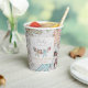 Ces tasses en papier de Baby shower, neutres pour les hommes et les femmes, sont équipées d'un motif mignon d'illustrations dessinées à la main de costumes de pyjama de Noël, d'animaux moelleux, de biberons, de pacificateurs, de cadeaux et de minuscules étoiles jaunes. Nom et événement personnalisables. Élégant arrière - plan gris doux.