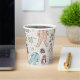 Ces tasses en papier de Baby shower d'hiver, neutres pour les deux sexes, présentent un joli motif d'illustrations dessinées à la main de costumes de pyjama de Noël, d'animaux peluches, de biberons, de bavettes, de pacificateurs, de cadeaux et de minuscules étoiles jaunes. Élégant arrière - plan d'ivoire.