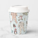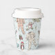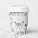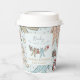 Ces tasses en papier de Baby shower, neutres pour les hommes et les femmes, sont équipées d'un motif mignon d'illustrations dessinées à la main de costumes de pyjama de Noël, d'animaux moelleux, de biberons, de pacificateurs, de cadeaux et de minuscules étoiles jaunes. Nom et événement personnalisables. Élégant arrière - plan bleu menthe.