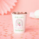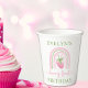 Berry First Birthday Paper Cups avec des fraises aquarelles, un joli arc-en-ciel vert rose et un petit coeur.