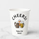Des tasses en papier de bières simples et élégantes montrant trois bières et des CHÈRES ! en haut en texte courbe contre un arrière - plan blanc clair. En bas, le texte PERSONNALISABLE dit PROFITEZ DES BIÈRES, et cela peut être changé à votre événement ou votre nom, etc (maximum deux lignes). Idéal pour les fêtes privées, les fêtes publiques, les festivals de bière, la saison de l'Oktoberfest, etc. D'autres versions, dont des drapeaux nationaux, des festivals de bière, l'Oktoberfest, etc., sont également disponibles. Les articles correspondants se trouvent dans la collection CHEERS AND BEERS de Berean Designs.