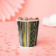 Si vous vous demandez quelles combinaisons de couleurs choisir pour votre décoration de Noël et vos fournitures d'enveloppement cadeau cette année, j'ai créé des collections de motifs de coordination pour rendre la vie un peu plus facile. Ce design de tasse en papier présente un design moderne et vertical stripe, avec un effet parties scintillant et grunge, représenté ici dans une palette de couleurs noir et or. Vertical 'Fa La La La' en or ajoute un accent amusant. Recherchez ID1009 pour voir d'autres produits et motifs dans ce jeu de couleurs.