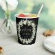 Élégantes tasses en papier personnalisées noires pour mariées/wedding showers. Un design à double face, avec des neiges peintes à la main et des eucalyptus disposés en une belle couronne botanique. Tout le texte est entièrement modifiable de sorte que vous pouvez facilement modifier/supprimer le message sur un ou les deux côtés et modifier le style/la couleur/la taille de la police. Coordonner les éléments disponibles.