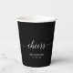 Ce design de tasse de papier présente des lettres "Cheers" stylisées dans un thème de couleur noire. Vous pouvez customiser le texte et ajouter cette tasse de papier à n'importe quel événement (fête d'anniversaire, mariage, anniversaire, fête de la retraite, fête de vacances, etc). Les invitations et les fournitures de fête correspondants sont disponibles dans ma boutique BaraBomDesign.