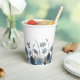 Elégant design floral bordé de fleurs bleues et beiges avec de hautes tiges et des feuilles sur un arrière - plan blanc propre, créant un look doux, moderne et sophistiqué.