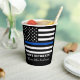 Bonne retraite ! Ajoutez la touche finale à votre retraite de police ou à votre fête d'obtention de diplôme avec ces minces tasses de papier de retraite de police de ligne bleue et des fournitures de fête. Etats-Unis Drapeau américain en couleurs Police Drapeau, dessin en détresse. Cette joyeuse collection de retraite d'agents de police sera un favori. Personnalisez avec le nom des officiers, et une retraite heureuse peut être changée en félicitations soit pour le parti de la retraite de la police, soit pour le parti de graduation de l'académie de police. Consultez notre mince collection de lignes bleues pour les invitations à la retraite de la police, les cadeaux de la police, les faveurs de la fête et les fournitures. DROIT D'AUTEUR © 2020 Judy Burrows, Black Dog Art - Tous droits réservés. Bleu Léger Drapeau Police Retraite Coupes de papier