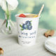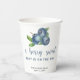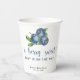 Carte d'invitation baby shower mignonne avec aquarelle illustrant les bleuets. Le texte dit "un bébé doux aux baies est en route." Éléments correspondants disponibles.