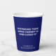 Easily personalize our 8 ounce paper cups with your business logo and custom text. These FDA approved paper cups are for cold and hot drinks. The dimensions for the 8 oz cups are 3.75 inch x 3 inch. Available with or without lids. Also available in 12 oz size. Designed in dark blue and other colors (all colors are customizable). Sold in sets of 8. Low minimum order quantity and no setup fee. Printed in the U.S.A.