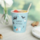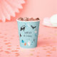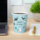 Fun halloween thème fête d'anniversaire tasse de papier avec illustration des créatures d'halloween dans un arrière - plan bleu.