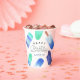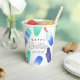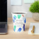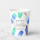 Conçues pour répondre aux invitations de fête d'anniversaire de nos enfants, ces mignonnes tasses personnalisées en papier ont une bordure de popsicles aquarelles en vert et bleu. "Joyeux anniversaire [nom]" apparaît dans le centre en lettres blanches.