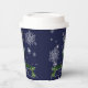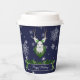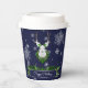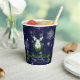 Sip your favorite Christmas time beverages with a festive set of Blue Reindeer Paper Cups. Paper cup design features a festive reindeer wearing a Christmas wreath adorned with holly berries and falling snowflakes and a holiday greeting box decorated with holiday garland. Additional gift and holiday items available with this design as well.