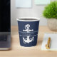 Les pièces de cette élégante suite de mariage présentent un style nautique classique et un style épuré et minimaliste. Des vagues stylistiques dans les teintes allant de l'aqua au bleu marine et une illustration d'ancrage et de corde apportent des accents uniques. Un arrière - plan bleu marine avec une fine tuyauterie blanche et une grande image d'ancrage donnent à cette tasse en papier mariage un look moderne saisissant. Idéal pour les mariages de club nautique, de bateau, de plage ou d'été. Recherchez ID836 pour voir cette suite complète et d'autres avec des accents d'éléments marins alternatifs.