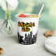 Bodega Mud - si vous savez, vous savez. Forte, grasse, authentique, bon marché, pas un barista en vue. Le café des rues et du métro. La Boue de Bodega est en couleur sur un skyline de ville stylisé.