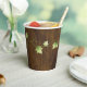 Tasses en papier mariage à thème rustique, avec un arrière - plan en bois foncé et des graphiques en lierre vert. Customisez d'ajouter votre propre texte.